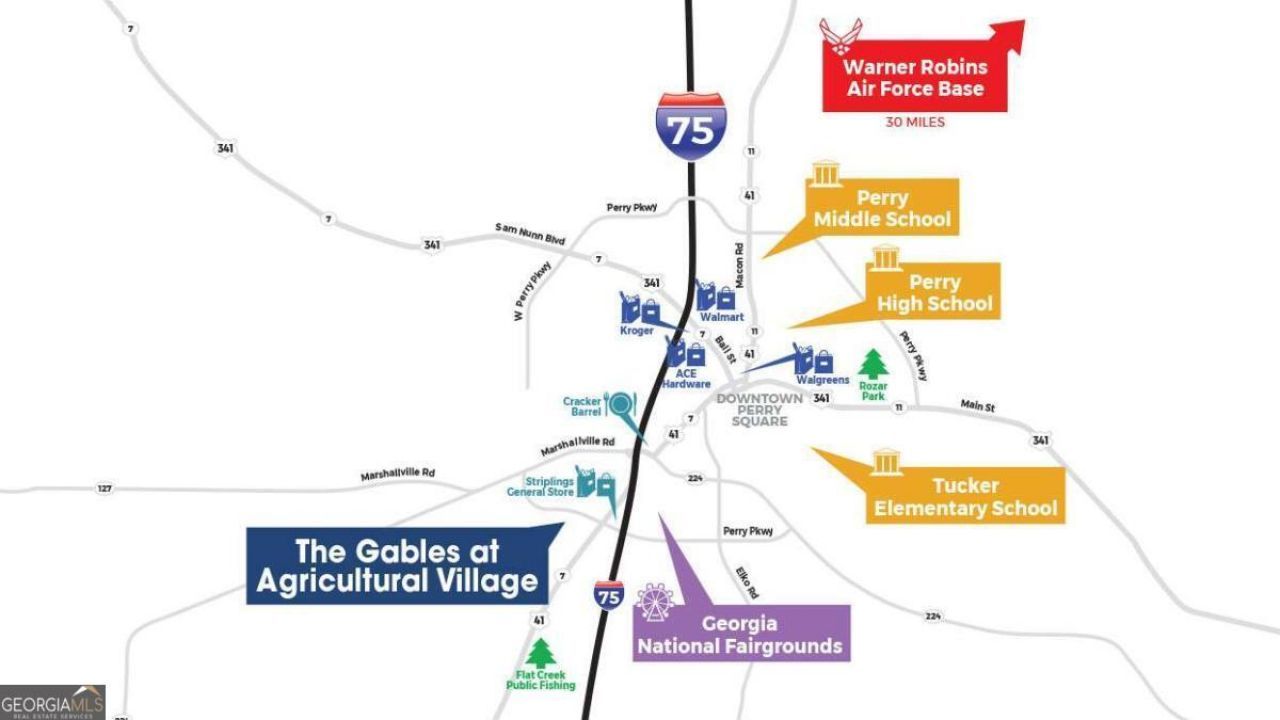 The Gables at Agricultural Village in Perry, Georgia is an incredible opportunity for attainable homeownership in a prime location just minutes from Robins Air Force Base, I-75 and Georgia National Fairgrounds. The Museum of Aviation with the Georgia Aviation Hall of Fame located just a short drive away in Warner Robins. Plus, this is the heart of Georgia's peach-growing country so you can take advantage of fresh home grown produce. The Gables at Ag Village is offering the Pearson floor plan. This is a 3 Bedroom 2.5 Bath Townhome with one car garage. The home has open concept living on the main floor with Luxury Vinyl Plank flooring. Kitchen with stainless steel appliances (stove, dishwasher and built-in microwave). Quarts counter tops in Kitchen and Marble tops in baths. Nice size Owner's suite, double sinks and large shower with glass doors in owner's bath. Two additional bedrooms, laundry and flex space on the second floor. Home has rear patio for grilling and entertaining. Seller is offering up to $10,000. toward closing cost with preferred lender. Stock photos - photos are not of actual home. Home is under construction with a projected closing date June/July 2025. Builder is accepting contracts now. It's a great time to secure your new home at introductory pricing.