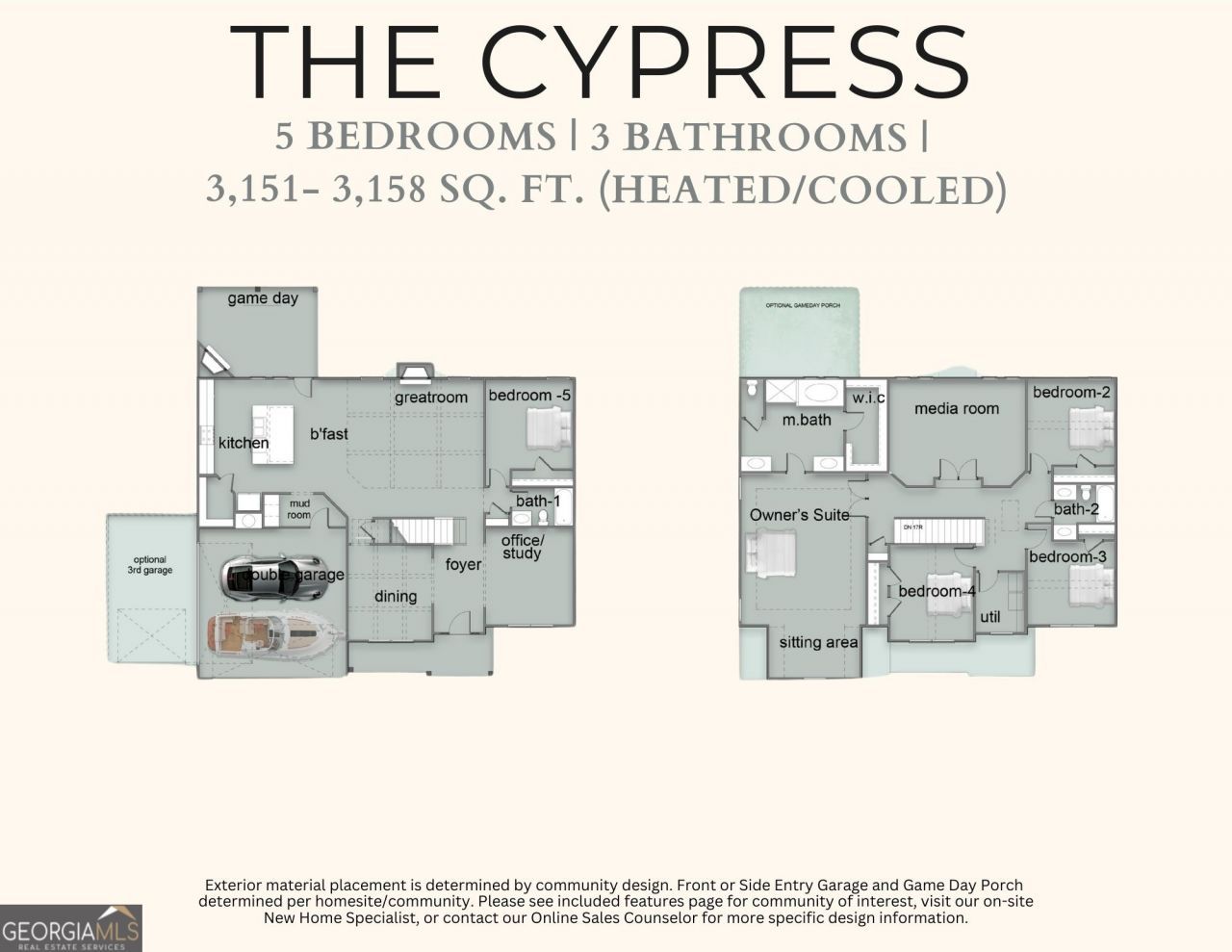 Welcome to Ridgeview, a Hughston Homes Community in North Warner Robins, where modern living meets everyday convenience. With easy access to outdoor favorites like Wellston Trail and Center Park, Ridgeview offers the perfect balance of connection, comfort, and lifestyle. Introducing the Cypress C, one of our most sought-after floor plans, offering 3,151 sq. ft. of beautifully designed living space. This flexible layout delivers exceptional curb appeal with a farmhouse-style porch, stone-wrapped columns, and a side-entry garage, along with a host of elevated finishes throughout. Step inside the inviting foyer and into a formal dining room accented by a coffered ceiling and rich trim detail. A versatile flex space offers the ideal setup for a home office, playroom, or creative space. The expansive Great Room features elegant coffered ceilings and a cozy wood-burning fireplace, flowing seamlessly into the heart of the home. The Gourmet Kitchen shines with timeless soft-close cabinetry, quartz countertops, a herringbone tile backsplash, a gas cooktop, stainless vent hood, single wall oven/microwave combo, and an oversized center island with sink and dishwasher. A bright breakfast area keeps everyone connected and makes everyday living effortless. A main-level 5th bedroom with full bath offers flexibility for guests or multigenerational living. Just off the garage, the Owner's Entry includes Hughston Homes' Signature Drop Zone with built-in cubbies for staying organized. Upstairs, enjoy a step-up media room perfect for movie nights or game days. The Owner's Suite provides a true retreat with tray ceilings, a private sitting area, and a spa-inspired bath featuring a garden tub, tiled shower, dual vanities, and a spacious walk-in closet. Secondary bedrooms are generously sized, with a conveniently located upstairs laundry and hall bath. Luxury flooring enhances the main living areas, while luxury upgrades complete the home, including a gas tankless water heater, enhanced trim and plumbing packages, and 2 blinds on the front of the home. Step outside to the Signature Gameday Patio, complete with a wood-burning fireplace, ceiling fan, TV outlet, and outdoor speakers, perfect for relaxing evenings or hosting weekend gatherings. Elevate your lifestyle and make every day feel extraordinary. This Cypress home is ready for your next chapter!