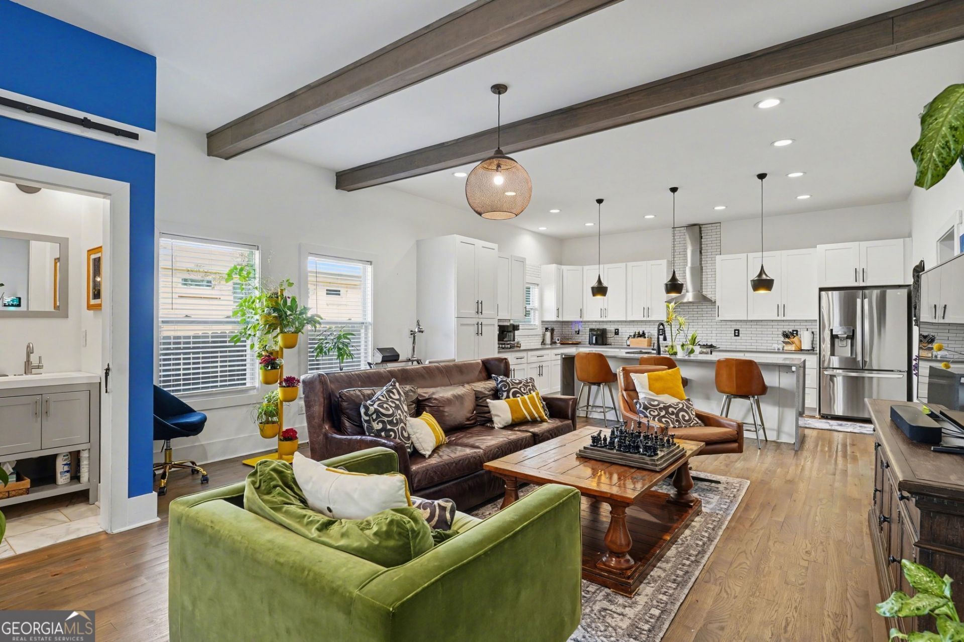 Walk to downtown Oakhurst and Kirkwood from this stunning 6-bedroom, 5-bath modern farmhouse, ideally located less than a 5-minute walk to the East Lake MARTA station. Designed for both everyday living and entertaining, the open floor plan features a bedroom with en-suite on the main level, ideal for guests or a home office. The main living area is filled with natural light and showcases designer finishes, hardwood floors, and custom built-ins throughout. The gourmet kitchen includes white cabinetry, stone countertops, stainless steel appliances, a gas range, and a large waterfall island that opens seamlessly to the great room. Upstairs, the oversized owner's suite offers a spa-like bathroom with a glass-enclosed shower, freestanding tub, and a custom walk-in closet. The third level provides a flexible secondary suite, currently used as a media/lounge space, offering the functionality of a second primary or private retreat. The outdoor space is a true highlight, featuring a 40+ foot deck, private pool, and expansive outdoor living space-perfect for relaxing or entertaining. All of this is paired with the convenience of intown living, with easy access to some of the area's most popular shops, restaurants, parks, and transit.